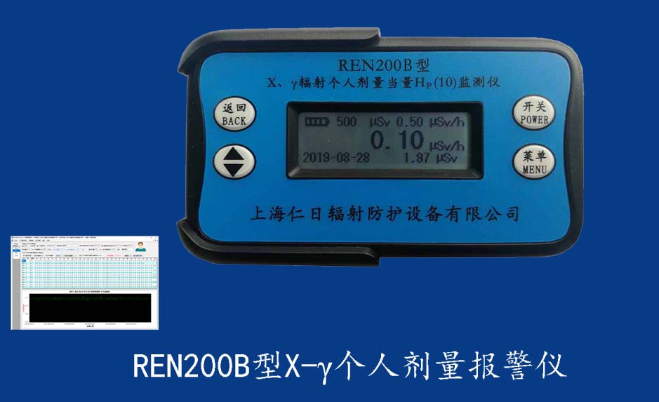 REN200A型X、γ輻射個(gè)人劑量當(dāng)量HP(10)監(jiān)測儀(簡稱:個(gè)人劑量報(bào)警儀)內(nèi)置高靈敏度蓋格計(jì)數(shù)管為探測器,主要用來監(jiān)測各種放射性工作場所的X、γ以及硬β射線的輻射,具有響應(yīng)快,測量范圍寬的特點(diǎn)。能顯示工作場所的劑量當(dāng)量率和累積劑量,更換電池時(shí),日期及累積數(shù)據(jù)能永久保存?蛇x配RenRiPersonal個(gè)人劑量管理軟件,該軟件可存儲多個(gè)人的歷史數(shù)據(jù),能記錄日累積、月累積、年累積、輻照時(shí)長、計(jì)算平均劑量率、扣除或不扣除本底輻射,且以文字和圖譜的方式展現(xiàn)數(shù)據(jù)。廣泛應(yīng)用于核電站、加速器、鋼鐵、化工、同位素應(yīng)用、工業(yè)X、γ無損探傷、放射醫(yī)療、鈷源治療、γ輻照、放射性實(shí)驗(yàn)室、核設(shè)施周圍環(huán)境監(jiān)測等領(lǐng)域中的工作人員進(jìn)行個(gè)人安全